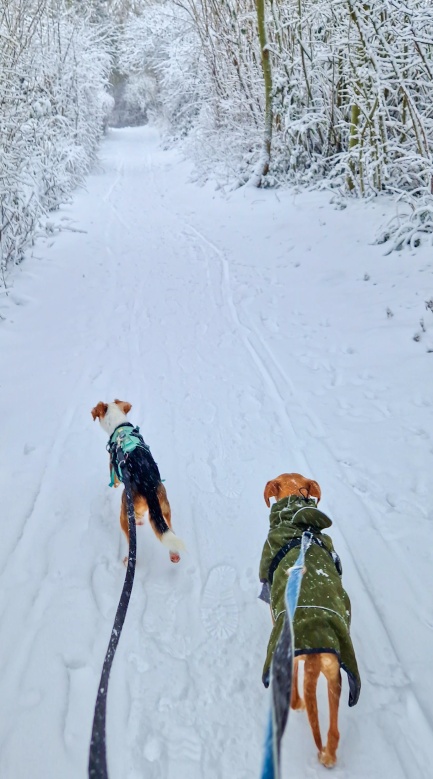 Luna ist das genaue Gegenteil. Ok - bei viel Regen mit Sturm hat sie auch keine Lust. Ansonsten erobert sie sich die Welt, ob Schnee, Kälte, Regen oder Hitze. Nur bitte nichts anziehen. Bei -10 Grad musste sie aber einen Mantel anziehen, da hatte ich sonst ein schlechtes Gewissen. Haben wir ja nur sehr selten.